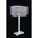 RENA Table Lamp, Hanging Crystal, 15"L X 9"W X 27"H, 7.55lbs. Diamond-cut faux crystals, which act as a unique shade, sit atop a metal base, giving this table lamp a classy look.